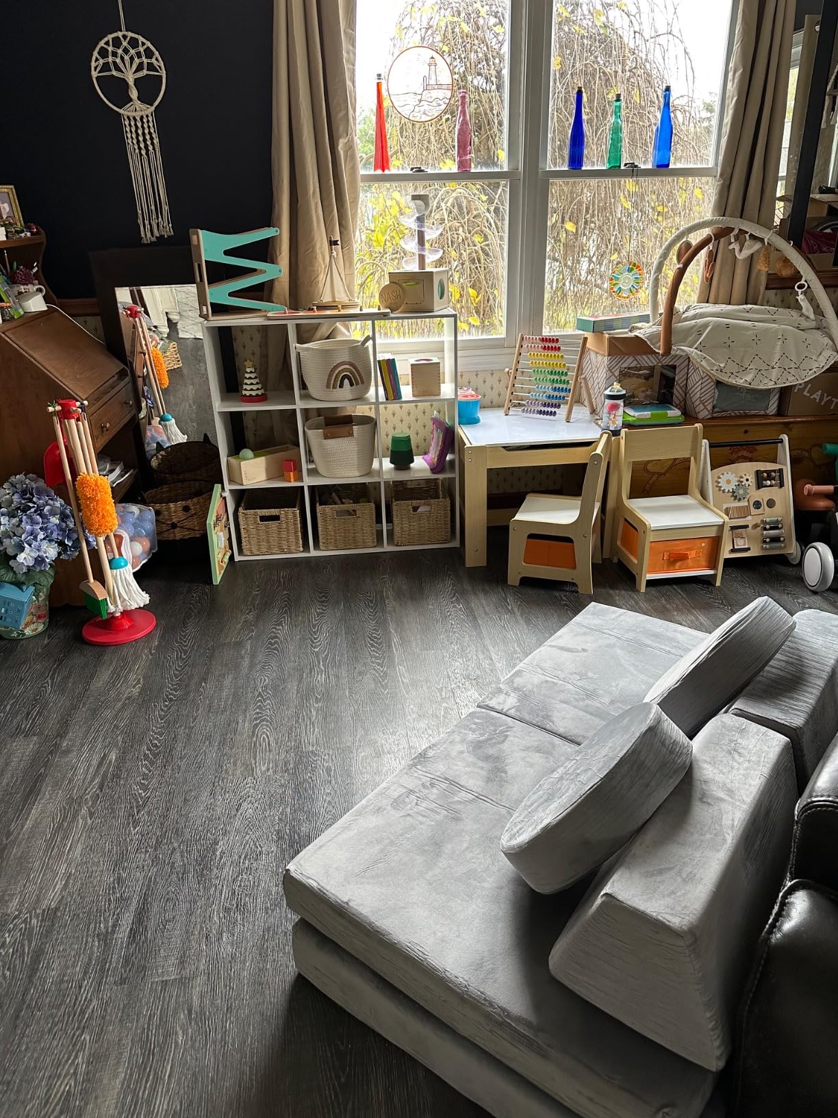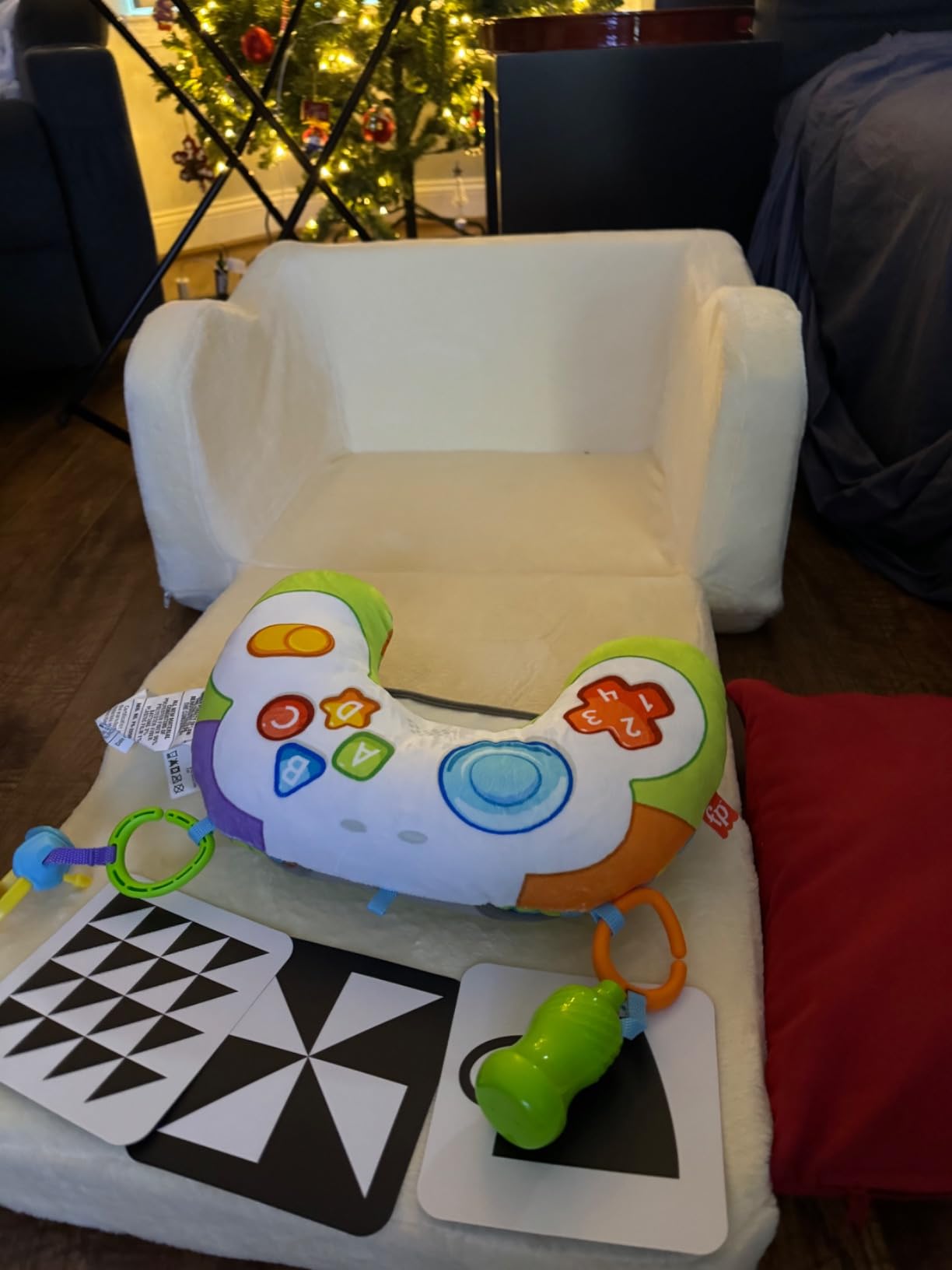 Super cute mini couch for my little one! He’s currently too young to sit in it on his own, but he does like to be propped up in the corner for a while. We also love that it opens up; it provides the perfect extra padding needed for tummy time or when he’s using his piano play gym.
