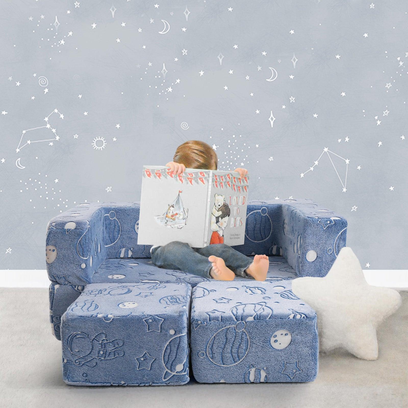 This toddler couch features a unique luminous design. Simply place it under a bright light for 10-15 minutes, and it will glow in the dark, creating a magical night sky effect that your child will love.